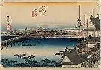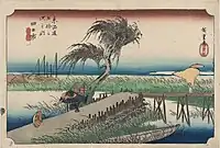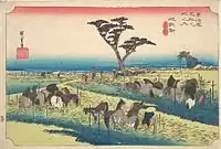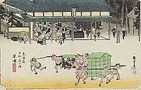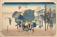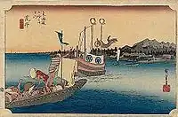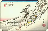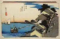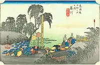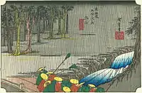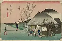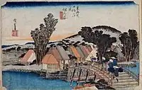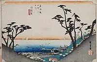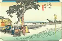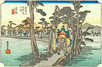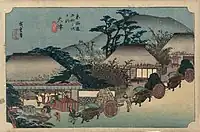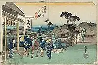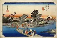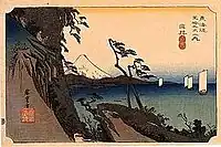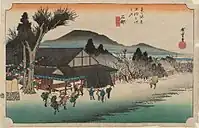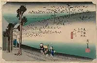The Fifty-Three Stations of the Tōkaidō (東海道五十三次, Tōkaidō Gojūsan-tsugi), in the Hōeidō edition (1833–1834), is a series of ukiyo-e woodcut prints created by Utagawa Hiroshige after his first travel along the Tōkaidō in 1832.[1]