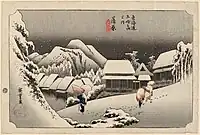 15. "Hiroshige / Evening Snow at Kambara (Kambara yoru no yuki), no. 16 from the Series Fifty-Three Stations of the Tokaido (Tokaido gosantsugi no uchi) / 1832 – 1833". daviddrumsey.com. Archived from the original on February 7, 2012. Retrieved June 4, 2013.