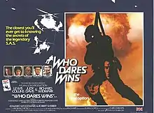 Who Dares Wins, also known as The Final Option, is a 1982 British political thriller film directed by Ian Sharp and starring Lewis Collins, Judy Davis, Richard Widmark, Tony Doyle, and Edward Woodward. The film is loosely based on the actions of the British Army's Special Air Service (SAS) in the 1980 Iranian Embassy siege; however, the plot makes considerable fictionalised departures from the actual siege and its background, and instead follows SAS Captain Peter Skellen as he infiltrates a terrorist group planning an attack on American diplomats. The film's title references the motto of the SAS.