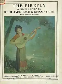 The Firefly was the first operetta written by composer Rudolf Friml, with a libretto by Otto Harbach. The story concerns a young Italian girl, who is a street singer in New York. She disguises herself and serves as a cabin boy on a ship to Bermuda, where she falls in love. Complications arise, and eventually, she becomes a grand opera diva.