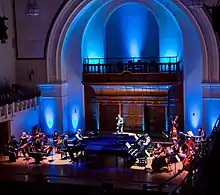 Members of The Four Pianists are Ivan Yanakov (pianist), Georgii Cherkin, Jivko Petrov and Antoni Donchev who in 2022 replaced Angel Zaberski. The Four Pianists regularly perform in Bulgaria's National Palace of Culture in front of 4,000-strong audiences.[1] [2] In 2016, the Four Pianists and the London Chamber Players played at London's Cadogan Hall, alongside Theodosii Spassov.[3][4] [5] In 2017 the Four Pianists performed a special concert at the Philharmonic Hall in Ljubljana. [6]
