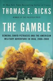 The Gamble: General David Petraeus and the American Military Adventure in Iraq, 2006–2008 is a 2009 book by journalist Thomas E. Ricks about the Iraq War. It covers the 2006–2008 period where his last book Fiasco left off. A primary focus is the Iraq War troop surge of 2007, along with the ascension to command of Gen. David Petraeus and the change in approach of Gen. Ray Odierno towards the use of counter-insurgency strategies.[1] Ricks believes that the troop surge was successful in reducing violence in Iraq and "reviv[ing] American prospects in the war," but that it was a failure based on its initial goal of bringing about a political reconciliation in Iraq.