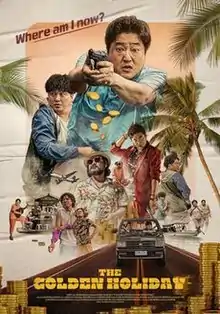 The Golden Holiday (Korean: 국제수사; Hanja: Gookjesoosa) is a 2020 South Korean action comedy film written and directed by Kim Bong-Han, starring Kwak Do-won, Kim Dae-myung, Kim Sang-ho and Kim Hee-won.[3] The film follows a detective who takes his family on a trip to Philippines and becomes a murder suspect, only to become further entangled with a criminal organization as he starts investigating the case with the help of a tourist guide, in order to clear his name. The film co-stars Shin Seung-hwan, Shin Dong-mi and Lee Han-seo. Actors Son Hyun-joo and Jo Jae-yoon make cameo appearances. It is director Kim's third film after The Hero (2013) and Ordinary Person (2017). Filipino actor Mon Confiado makes his South Korean film debut with the film shot mostly in Philippines.[4]