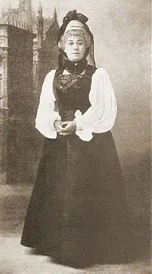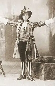 Mr. and Mrs. Carte hired a new soprano, the Hungarian Ilka Pálmay, who had recently arrived in England and quickly made a favourable impression on London audiences and critics with her charming personality.[15] Gilbert devised a new plot line revolving around Pálmay, making her character, Julia, an English actress among a company of German actors, with the topsy-turvy conceit that her "strong English accent" was forgiven by her audiences because of her great dramatic artistry. Rutland Barrington's role, Ludwig, became the leading comedian of the theatrical company and the central role in the opera.[16] Gilbert had paired the title character with contralto Rosina Brandram, causing Sullivan to suggest some different pairings of the characters, but Gilbert and the Cartes disagreed; Mrs. Carte went so far as to caution Sullivan that his ideas would upset the casting.[17] Unhappily for Gilbert, three of his usual principal players, George Grossmith, Richard Temple and Jessie Bond, who he had originally thought would play the title character, the prince and the princess, all left the company before rehearsals began for The Grand Duke, and so he reduced the size of these roles, further changing his original conception.[18]
