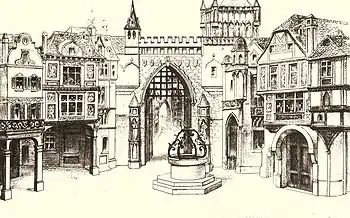 Gilbert had begun working on the story of The Grand Duke in late 1894.[6] Elements of the plot were based on several antecedents including "The Duke's Dilemma" (1853), a short story by Tom Taylor, published in Blackwood's Magazine, about a poor duke who hires French actors to play courtiers to impress his rich fiancée. The story also contains the germ of the character of Ernest.[8][9] In 1888, "The Duke's Dilemma" was adapted as The Prima Donna, a comic opera by H. B. Farnie that contains other details seen in The Grand Duke, including the Shakespearean costumes, a prince and princess who make a theatrical entrance.[10] In addition, the plot shows similarities with the first Gilbert and Sullivan opera, Thespis, in which a company of actors gain political power.[11] Gilbert read a sketch of the plot to Sullivan on 8 August 1895, and Sullivan wrote on 11 August to say that he would be pleased to write the music, calling Gilbert's plot sketch "as clear and bright as possible".[7][12] The theme of Ernest (and then Rudolph) being legally dead while still physically alive was used in earlier works by Gilbert and, separately by Sullivan, for example Tom Cobb (1875) and Cox and Box (1867).[13][14] Gilbert sold the libretto of the new piece to Carte and Sullivan for £5,000, and so he took no risk as to whether or not it would succeed.[12]