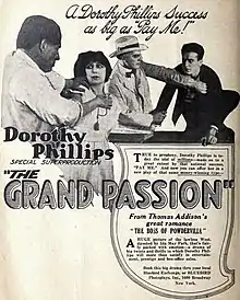 The Grand Passion is a 1918 American silent Western film directed by Ida May Park and starring Dorothy Phillips, Jack Mulhall, and Lon Chaney. Ida May Park also wrote the screenplay, based on a novel The Boss of Powderville by Thomas Addison.[1] The film was allegedly shown in some theaters under the title of The Boss of Powderville.[2]