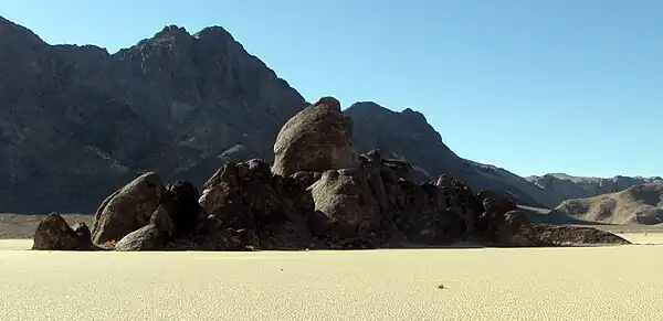 The Grandstand is a natural rock monolith located near the northerly end of Racetrack Playa, north of Death Valley in the Cottonwood Mountains of Death Valley National Park, in Inyo County, California.