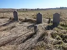 The cemetery is located on a 2/3 acre parcel of land donated by John West to the Methodist Church in 1844 and retains its separate Land Parcel number.[9] It is located 500m to the south of The Grange farmhouse and sits in the north eastern corner of the section of land south of O'Connell Road. It is bordered to the south and east by the Grange, by O'Connell Road to the north, and the neighbouring property[10] to the west. A small wooden Methodist church was apparently demolished c. 1920 and only the ruins of the graveyard remain. The graves are those of local Macquarie Plains families, including some members of the West family, apparently dating from between 1837 and 1896. 22 inscriptions were recorded for the Australian Cemeteries Index in 2006 and are available for viewing online. This website quotes a local community member stating that the cemetery was a children's cemetery during the 1876 scarlet fever epidemic, and that many children are buried here in unmarked graves.[1]
