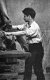 Barnard conceived the sculpture in 1894. Originally it was intended to be a fountain sculpture for the courtyard of The Dakota, a luxury apartment building on Manhattan's Upper West Side.[lower-alpha 1] Alfred Corning Clark, an heir to the Singer Sewing Machine fortune, was Barnard's most important early patron.[3] Clark's father had built The Dakota, and bequeathed the building to Clark's teenage son Edward in 1882.[4] Clark visited Paris in 1895 and commissioned Barnard to proceed with the larger-than-life-size sculpture,[3] but it was never installed at The Dakota.