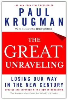 The Great Unraveling: Losing Our Way in the New Century is a book by American economist and Nobel laureate Paul Krugman, consisting of a collection of his columns for The New York Times (and some for Slate and Fortune). The collected columns were concerned mainly with the U.S. economy in the early 2000s, and about the economic and foreign policies of the George W. Bush administration.[2][3]