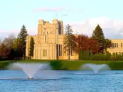 The Grove originally contained 18 major structures, of which 17 contribute to the historic character of the district. Much of the land is owned by the city, including the large City Hall and waterworks buildings. Additional land is owned by the Holy Family Catholic Church, located near the northern part of the district. The remaining structures were built as private homes (although most have been converted to other uses). These homes were built in a range of architectural styles, including Italianate, Georgian Revival, and Shingle style.[2]