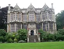 The Hall, in particular the south front, is notable for having "more glass than wall".[1] Not all contemporaries approved of the style. Francis Bacon in On Building refers to "fair houses so full of glass that one cannot tell where to become to be out of the sun or cold".[5][6] The architect is not known. Similarities of style to Longleat, not far away and built about 30 years earlier, have led to suggestions that Robert Smythson may have been involved in the design.[6]