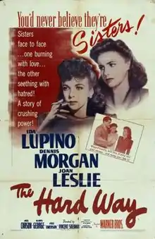 The Hard Way is a 1943 Warner Bros. musical drama film starring Ida Lupino, Dennis Morgan, and Joan Leslie. Directed by Vincent Sherman, it is based on a story by Irwin Shaw which was reportedly based on Ginger Rogers' relationship with her first husband, Jack Pepper (whom she married in 1928 at age 17) and her own mother, Lela.[2]