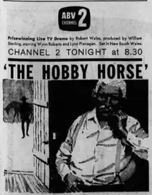 The Hobby Horse is a 1962 Australian television play which aired on ABC. Broadcast live,[2] it was a drama set on a grazing property in northern New South Wales about a rodeo rider.
