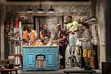 The play was directed by Steve H. Broadnax III and written by Katori Hall.[3] She was inspired to write a play that centered on Black gay men because she wanted to create a story that reflected her brother's life experiences.[4] The Hot Wing King premiered on February 11, 2020, off-Broadway at Pershing Square Signature Center in Manhattan.[5] The show's run ended prematurely due to restrictions related to the COVID-19 pandemic.[6] Katori Hall directed a production at the Alliance Theatre in 2022.