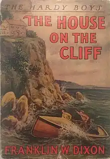 The House On The Cliff is the second book in the original The Hardy Boys Mystery Stories published by Grosset & Dunlap. The book ranks 72nd on the Publishers Weekly's All-Time Bestselling Children's Book List in the United States with 1,712,433 copies sold as of 2001.[1] This book is one of the "Original 10" Hardy Boys books and is an excellent example of the writing style used by the Stratemeyer Syndicate's writers. This style influenced many other "youth adventure series" books that the Stratemeyer Syndicate also published, including the Nancy Drew series (designed as a corollary to The Hardy Boys written from the perspective of young girls), the Tom Swift adventure series, the Bobbsey Twins and other lesser known series. All of them used a unique writing style that made them very recognizable as Stratemeyer product.