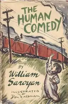 The Human Comedy is a 1943 novel by William Saroyan. It originated as a 240-page film script written for MGM. Saroyan was planning to produce and direct the film, but he was dropped from the project either because the script was too long or because a short film he directed as a test was not considered acceptable — or both.[1] He walked off the lot, went home, and swiftly created a novelization, which was published just before the film came out. It was the March 1943 Book-of-the-Month Club selection, and became a best-seller a week after its release. Saroyan won the Academy Award for Best Story for the film, The Human Comedy.