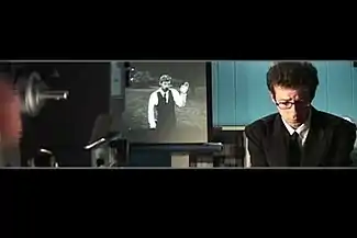 Watching his father (Daniel Cockburn) in the home movie, he realizes that the gestures his father made are a kind of prison; he is forced to repeat them involuntarily. Then the man in black looks on with the horror of recognition, realizing that his father's body language "prefigured all the gestures into which I would later grow, thinking they were my own."[2]