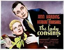 The Lady Consents is a 1936 American romantic melodrama film directed by Stephen Roberts and starring Ann Harding, Herbert Marshall and Margaret Lindsay.[2] The screenplay was written by P. J. Wolfson and Anthony Veiller, from Wolfson's story "The Indestructible Mrs. Talbot". RKO Radio Pictures released the film on February 7, 1936.