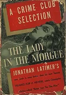 The Lady in the Morgue (1936) is one of the novels by Jonathan Latimer featuring private detective William Crane. The lady of the title is a female corpse which is stolen from a Chicago morgue before the dead woman's identity can be established.