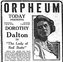 3. 1 2 "Dorothy Dalton in The Lady of Red Butte Begins Today". Winnipeg Free Press. October 23, 1919.