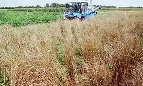The Land Institute promotes "natural systems agriculture" through plant breeding.[6] Using selective breeding and other techniques, they are working to domesticate wild perennials.[7] The organization's concept of developing perennial crops is modeled after the ecological design of prairies, which are known for their soil quality, deep root systems, and self-sufficiency.[6][8][9] In an interview, Wes Jackson called the concept "an inversion of industrial agriculture."[6] Perennial polyculture systems may have a variety of benefits over conventional annual monocultures such as increased biodiversity, reduced soil erosion, and reduced inputs of irrigation, fossil fuels, fertilizers, and pesticides.[10][11] Perennial crops also show promise in root-based carbon sequestration.[12][13][14] The organization's achievement of productive and genetically stable perennial crop plants for use by farmers is expected to take several decades.[15][8] Critics note the future economic challenge in profitably harvesting perennial polyculture.[11]