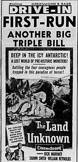 The Land Unknown is a 1957 science fiction CinemaScope adventure film about a naval expedition trapped in an Antarctic jungle. The story was allegedly inspired by the discovery of unusually warm water in Antarctica in 1947. It stars Jock Mahoney and Shirley Patterson and was directed by Virgil W. Vogel. The film's low-budget special effects include men in dinosaur suits, puppets and monitor lizards standing in for dinosaurs.