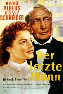 The Last Man (German: Der letzte Mann) is a 1955 West German drama film directed by Harald Braun and starring Hans Albers, Romy Schneider and Rudolf Forster. The film is a remake of the 1924 Weimar silent The Last Laugh, with the setting updated to post-war Germany.[1]