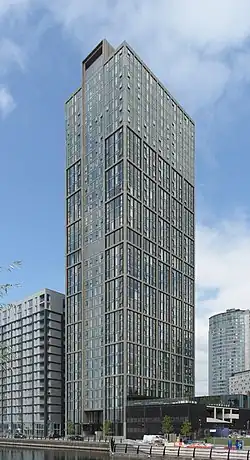 The Lexington is a 35-storey residential building at Princes Dock in Liverpool, England. Part of the larger Liverpool Waters re-generation project, it was completed in September 2021.[2] Estimated to cost £90 million, the "New York style" building includes 325 apartments, a sky lounge, gym and rooftop garden.[3] Upon completion, it became the third tallest building in Liverpool at 112.5 m (369 ft).[4]