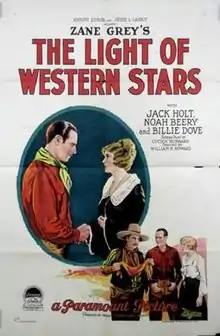 The Light of Western Stars is a 1925 American silent Western film directed by William K. Howard and starring Jack Holt, Billie Dove, and Noah Beery. The film was based on a 1914 Zane Grey novel and had been filmed before in 1918.[1]