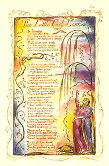 The Little Girl Lost is a 1794 poem published by William Blake in his collection Songs of Innocence and of Experience. According to scholar, Grevel Lindop, this poem represents Blake's pattern of the transition between "the spontaneous, imaginative Innocence of childhood" to the "complex and mature (but also more dangerous) adult state of Experience."[1]