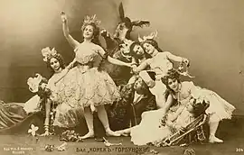 Russian democratic critics such as Mikhail Saltykov-Shchedrin and Nikolay Nekrasov however strongly criticized the work.[5] They viewed the ballet as a pathetic parody of Russian dances rather than a genuine collection of dances, and accused the choreographer of being mediocre, the audience of tastelessness, Tsar Alexander II of having a criminal attitude to his people, and all of them together of a lack of understanding of social development.[4]