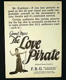 The Love Pirate is a 1923 American silent drama film directed by Richard Thomas and starring Melbourne MacDowell, Carmel Myers and Kathryn McGuire.[1]