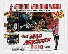 The Mad Magician is a 1954 American horror film in 3D, directed by John Brahm starring Vincent Price, Mary Murphy and Eva Gabor. It was produced and distributed by Columbia Pictures, with a release in 3-D to build on the craze started by films such as House of Wax (1953), which also starred Price.