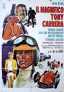 The Magnificent Tony Carrera (Spanish: El magnífico Tony Carrera, German: Carrera - Das Geheimnis der blonden Katze, Italian: Il magnifico Tony Carrera) is a 1968 Spanish-German-Italian Eurospy film written and directed by José Antonio de la Loma and starring Thomas Hunter.[1][2] It was originally shot in 70 mm.[2] Roger Moore was initially cast in the title role, but he had to leave the set because of a car accident.[2]
