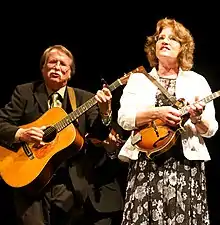 Ruth McLain Smith (b. Ruth Helen McLain[48] in 1958)[15] plays mandolin, double bass, and sings.[35] When the band formed in 1968, she stood on chairs and milk crates to reach the neck of her bass.[50] On December 15, 1970, Ruth played the Appalachian dulcimer for the White House on national television after only 26 weeks of learning the instrument.[51][8] In 2007, Ruth was playing regularly with Grandpa Jones' family, and was a director with Usborne Publishing.[12] Ruth has a Bachelor of Arts from Berea College, and as of 2016 was a lecturer at Morehead State University.[52] Prior to 2007, Ruth married Philip Smith, and they have four children.[12] In 2011, she moved back to Berea, Kentucky to care for her mother, Betty.[49]