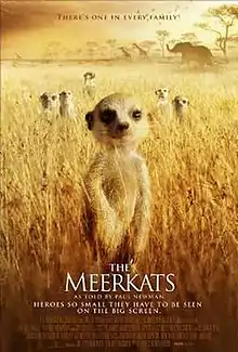 The Meerkats, also known as Meerkats: The Movie, is a feature-length 2008 British wildlife fiction film which anthropomorphises the daily struggles of a clan of meerkats in the Kalahari Desert. It was produced by BBC Films, and filmed by the award-winning BBC Natural History Unit. It is the debut directorial feature of James Honeyborne, previously a producer of natural history programmes for television. The worldwide premiere was held at the Dinard Film Festival, France in October 2008,[1] expanding to a wide release the following week. The film was released in 2009, on 7 August in the UK. This was dedicated to actor Paul Newman, the narrator of the film, who died in 2008, shortly before this movie was released making it his final film role.