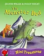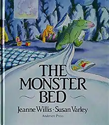 The Monster Bed is a 1987 children's book by Jeanne Willis and illustrated by Susan Varley that revolves around the twist on the common "monsters under the bed" story that frighten children. The book is a young reader, normally aimed for 4 years or older. The main character, the monster Dennis, believes that human children are under his bed and will get him as he falls asleep. His mother, however, tries to get him to go to sleep. Eventually, a human child accidentally ventures into their home cave, and both the human and Dennis discover each other, frightening both.