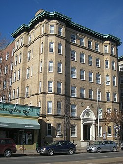 The Montrose is a historic multiunit residential building in Cambridge, Massachusetts. It is a six-story yellow brick building, whose Italian Renaissance details include a copper cornice with modillions, varied window treatments on each floor, belt courses of brickwork between some of the floors, and a front entry surround with fluted Doric columns. Built in 1898, it was one of the first "French flat" luxury apartment houses built in the city.[2] The building was listed on the National Register of Historic Places in 1986.[1]