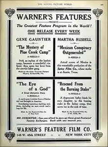 The Mystery of Pine Creek Camp is a 1913 American silent film produced by Gene Gauntier Feature Players and distributed by Warner's Features. It was directed by Sidney Olcott with himself, Gene Gauntier, Jack J. Clark and Arthur Donaldson in the leading roles.