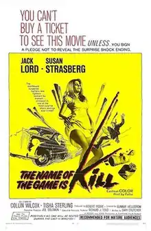 The Name of the Game Is Kill! is a 1968 American thriller film directed by Gunnar Hellström and starring Jack Lord, Susan Strasberg and Collin Wilcox Paxton.[1] It was shot on location in Arizona.
