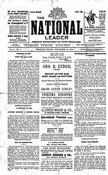 The National Leader was a newspaper published in Brisbane, Queensland, Australia from 1916-1918. It changed its title to The Leader in 1918 and ceased publication in 1919.[1]