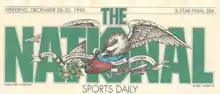The National Sports Daily, often referred to simply as The National, was a sports-centered newspaper published in the United States beginning on January 31, 1990.[1] The newspaper was based in New York City, was printed in a tabloid format, and was published Monday through Friday. It ceased publication in June 1991.