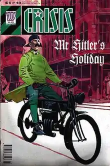 Adolf Hitler on the cover of Crisis #48, dated 7 July 1990; art by Steve Yeowell.