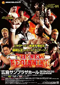 The New Beginning (2013) was a professional wrestling pay-per-view (PPV) promoted by New Japan Pro-Wrestling (NJPW). The event took place on February 10, 2013, in Hiroshima, Hiroshima, at the Hiroshima Sun Plaza Hall. The event featured nine matches, four of which were contested for championships.[1][2][3] It was the fourth event under the New Beginning name.