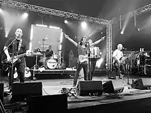 The Newcranes are a British folk punk band, formed in Derby, England. They are frequently compared to the Levellers and other contemporary folk-rock groups such as The Men They Couldn't Hang. The Newcranes quickly became a popular band on the early 1990s touring circuit. They signed with French label Musidisc Records and recorded their debut album, Frontline, which garnered critical acclaim and won the band many followers. They subsequently supported The Mission, Stiff Little Fingers, Bob Dylan and The Saw Doctors, and went on to release several more EPs. The band disbanded in 1996 after several line-up changes. In 2018, the principal songwriter Mark Simpson, along with bass player Bob Rushton and drummer Marcus Carter decided to reignite the band after a campaign by fans. They recruited Jonny Wallis and Julian Butt and, in March 2019, played a well-received reunion show at The Venue in Derby. The band have gone on to play festivals throughout the UK including Bearded Theory, Wickham Festival and Boomtown.