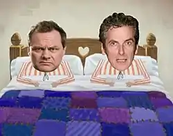 ![]() A screenshot of an online trailer for The News at Bedtime featuring Jack Dee (left) as John Tweedledum and Peter Capaldi (right) as Jim Tweedledee. | |