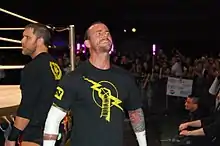 On the January 3, 2011 edition of Raw, The Nexus ambiguously announced after months of repeated attacks on Cena and the WWE roster that it was under "new management," with Punk (who disbanded the Straight Edge Society the previous September) being revealed to be the new leader, acquiring the position after Barrett lost a #1 contendership steel cage match involving Orton and Sheamus. Punk, having agreed to fall in line had Barrett successfully won the title shot, teased helping Barrett escape the cage before knocking him off of it. Barrett was subsequently exiled from The Nexus, which would be renamed "The New Nexus" to distance itself from former leadership.[34] After refusing to follow Punk's orders of initiation by hitting each other with kendo sticks, Gabriel and Slater left the group the following week on Raw, opting to join Barrett and former ECW Champion Ezekiel Jackson on SmackDown as The Corre while Harris, McGillicutty and Otunga successfully completed Punk's initiation.[35] On the January 17, 2011 edition of Raw, Mason Ryan joined The New Nexus after interfering in Punk's match against Cena, attacking both before Punk handed Ryan a Nexus armband.[36] On January 30, 2011 at the Royal Rumble, The New Nexus, who were also a part of the 40-man Royal Rumble match along with The Corre, cost Orton his rematch clause for Miz's WWE Championship, starting a feud with him.[37] Over the ongoing weeks, Orton defeated all members of The New Nexus, causing several storyline injuries by punting them.[38][39][40][41] At WrestleMania XXVII, Orton defeated Punk and, at Extreme Rules, Orton defeated Punk in a Last Man Standing rematch.[42][43] On the May 23, 2011 edition of Raw, thanks to a distraction from The New Nexus, McGillicutty and Otunga defeated Big Show and Kane for the WWE Tag Team Championship.[44] On the June 20, 2011 "Power to the People" edition of Raw, Punk was originally going to be named the number one contender for Cena's WWE Championship, but instead, he was forced to compete in a triple threat match with Alberto Del Rio and Rey Mysterio with a Falls Count Anywhere stipulation voted for by fans which Punk won, revealing after the match that his WWE contract would expire at Money in the Bank, where he would face Cena for the WWE Championship.[45] The following week on Raw, it was announced that Ryan suffered an injury over the weekend and left the group.[46] That same night, a brash Punk realized a worked shoot promo (which he dubbed a "pipe bomb"), reminding that once his contract expired at Money in the Bank, that would be the last time WWE would ever see him and the WWE Championship, as he considered taking his talents to another wrestling promotion, like Ring of Honor and New Japan Pro-Wrestling.[47] With his victory over Cena at Money in the Bank, the WWE Championship was finally held by the stable on their last night of existence.[48]