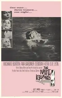 The Night of the Iguana is a 1964 American drama film directed by John Huston, based on the 1961 play of the same name by Tennessee Williams. It stars Richard Burton, Ava Gardner, Deborah Kerr, Grayson Hall, Sue Lyon, and Cyril Delevanti.[2]