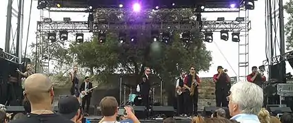 The Nightowls are an American musical group from Austin, Texas, whose debut album Good As Gold was named Top 10 of the 2014 Austin Music Awards Albums of the Year.[1] Their sound combines R&B, Funk and soul music. Lead singer and multi-instrumentalist Ryan Harkrider formed The Nightowls in 2011.[2] His song "Nobody Ever Wants to Leave" was commissioned in 2009 by The Austin Convention and Visitor's Bureau as Austin's official theme song.[3] The Nightowls have released three full-length albums and two EP's. Two of which were recorded at the iconic Soul/R&B studios - FAME Studios in Muscle Shoals, Alabama and Royal Studios in Memphis, Tennessee.